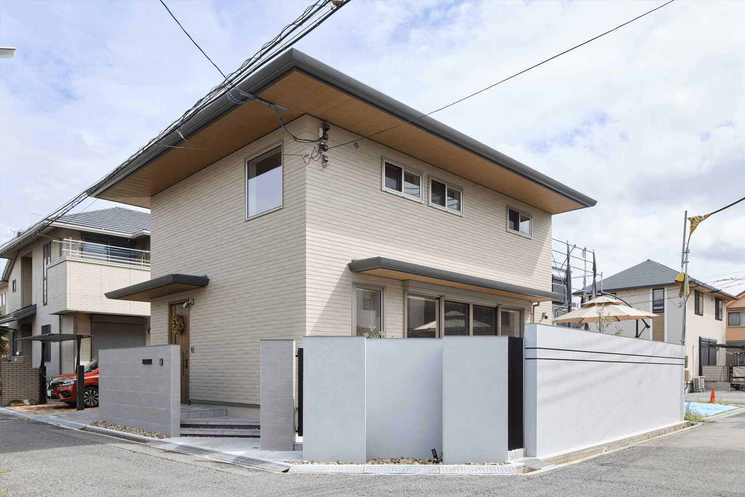 控え壁が不要なため、塀の高さをしっかり確保しながらもすっきりとした外観を実現。