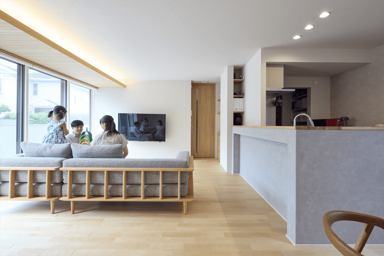 呼吸する壁が、家族の暮らしを心地よく包みます。